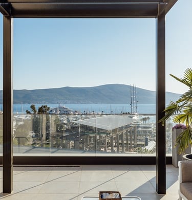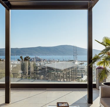 Our penthouse offers breathtaking 180-degree sea views and unparalleled luxury right in the heart of Porto Montenegro marina.